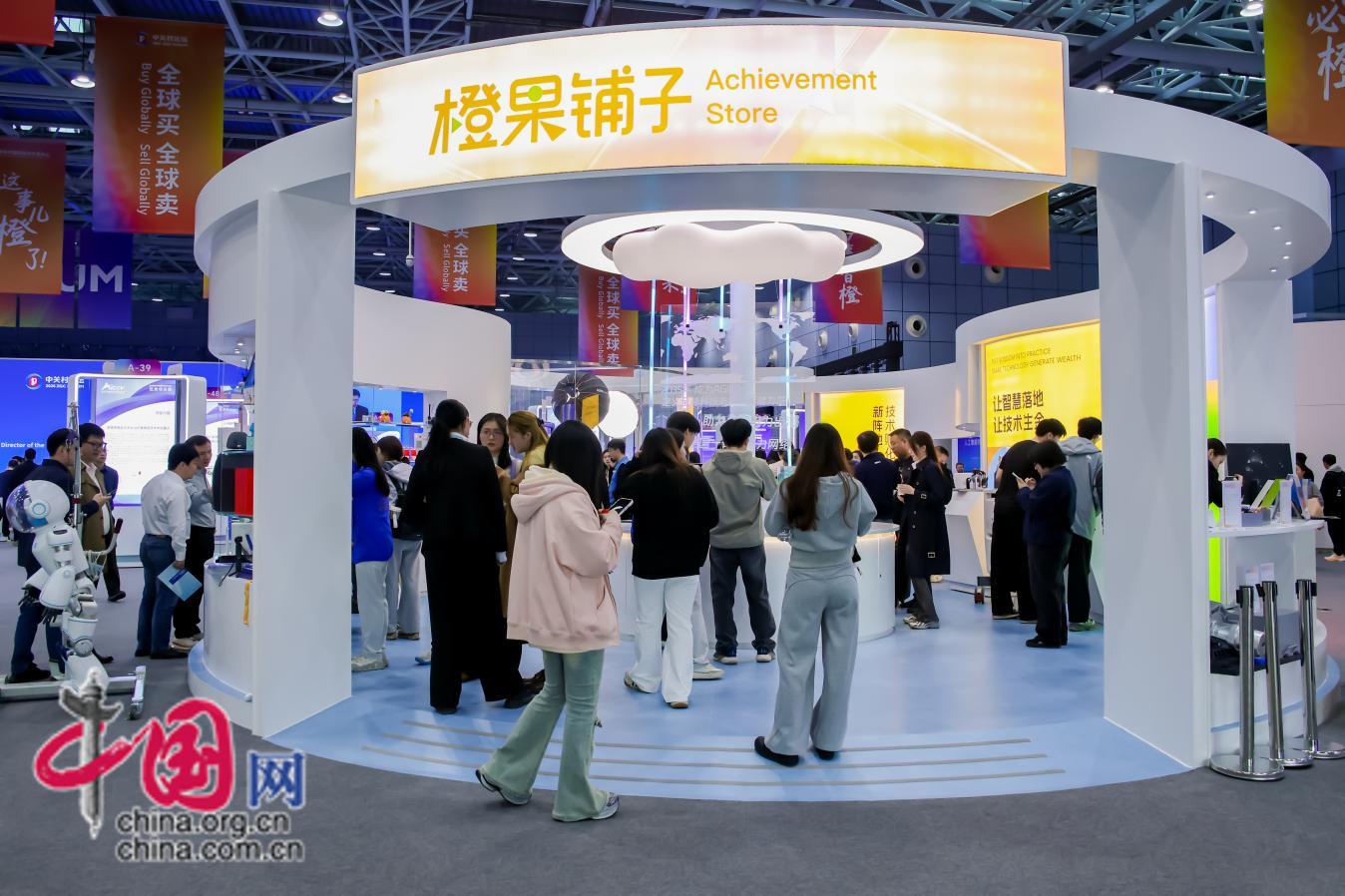 圖為交易大會(huì)現(xiàn)場(chǎng)設(shè)置的“橙果鋪?zhàn)印敝辈ラg。